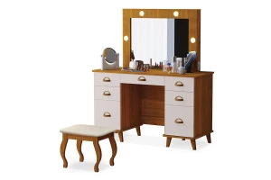 Penteadeira Camarim New Seul com Banqueta Almofadada Ambiente Freijó Maní - Luapa