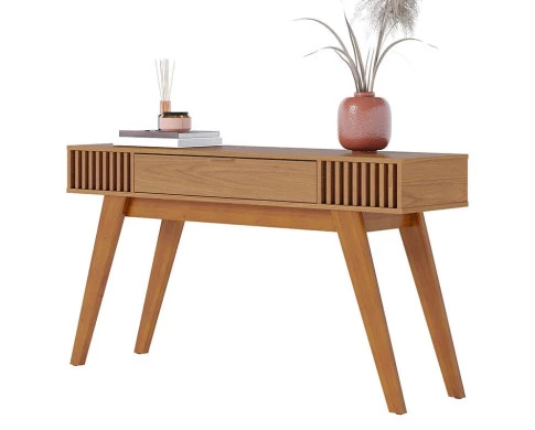 Com um design sofisticado e linhas retro para compor a decoração da sua casa o Aparador Riviera fabricado pela Colibri Moveis possui 01 gaveta central com corrediças telescópicas, puxador metálico dourado fosco, ripado artesanal nas laterais, peças traseiras com acabamento possibilitando a utilização do móvel para divisão de ambientes, pés em madeira maciça. Fabricado com materiais de alta qualidade que garante resistência e durabilidade ao produto. Confira mais detalhes e aproveite!