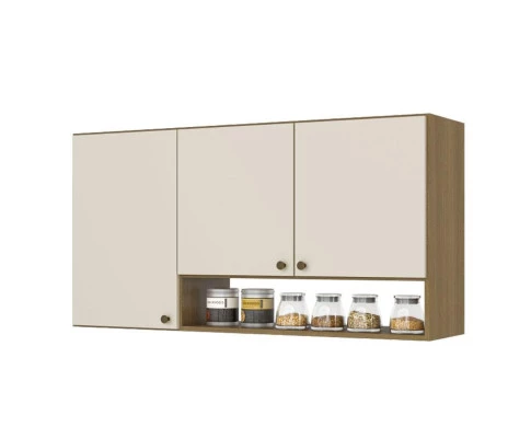 Armário Aéreo 120 cm 3 Portas com Nichos Magnólia Naturalle Off White - THB