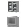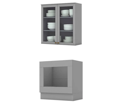Armário Aéreo 2 Portas de Vidro com Balcão Forno de Embutir 80cm Americana Cinza - Henn