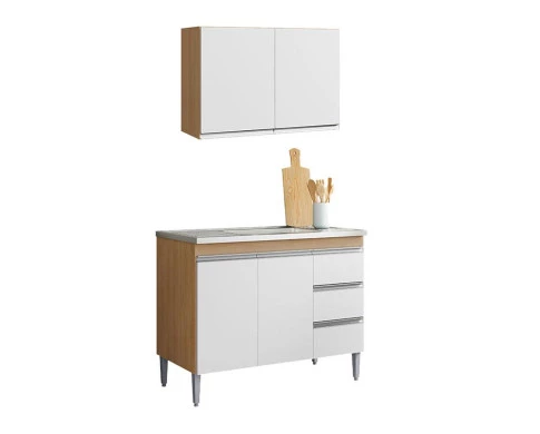 Armário Aéreo 80 cm com balcão de pia 100 cm Andréia Branco Amêndoa – AJL