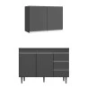 Armário Aéreo Andréia 80 cm Balcão de Cozinha com Tampo 100 cm Cinza - AJL