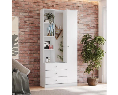 Renove a decoração de sua casa com o melhor custo benefício do mercado! Apresentamos o Armário Multiuso Doha desenvolvido pela Henn, o móvel perfeito para a organização de qualquer ambiente. Conta com 2 portas, uma com espelho, 3 gavetas, prateleiras internas e externas para decorações e demais objetos. Sua montagem é ajustável, pode ser montado com as gavetas do lado esquerdo ou direito conforme o gosto do cliente. Confira mais detalhes e aproveite!