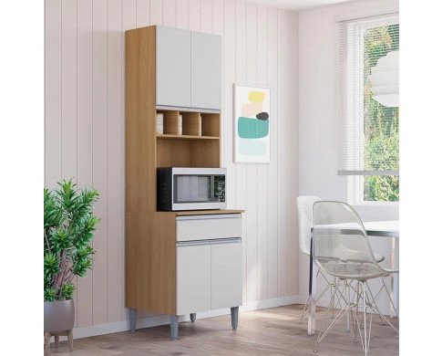 Começou a montar sua cozinha? Então apresentamos para você este belo armário paneleiro da linha Andréia. Composto por quatro portas, uma gaveta com corrediças metálicas garantindo um deslizamento mais suave, além de um nicho para acomodar microondas ou forno elétrico e três porta garrafas, agregando mais praticidade para seu dia a dia. O design é complementado com puxadores e pés em PVC, proporcionando mais resistência e estabilidade. Fabricado pela AJL, é desenvolvido em 100% MDP, sendo a solução ideal para otimizar sua cozinha com versatilidade e estilo, sem abrir mão da organização e bom gosto. Aproveite e garanta já o seu!