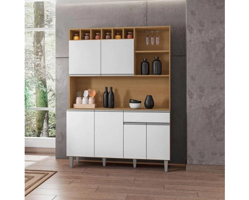 Começou a procurar móveis para sua cozinha? Então apresentamos para você este belo kit para cozinha da linha Alice. Composto por seis portas e uma gaveta com corrediças metálicas, oferece um amplo espaço interno para guardar seus utensílios ou mantimentos. Conta ainda com nicho menor com seis repartições, perfeito para armazenar temperos ou pequenos objetos, além de dois nichos maiores e um nicho grande, ideal para acomodar seus eletros ou itens decorativos. Seus puxadores e pés em PVC entregam mais resistência e durabilidade. Fabricado pela AJL, é desenvolvido em 100% MDP, sendo perfeito para quem busca organização, praticidade e aproveitamento inteligente da cozinha. Aproveite e garanta já o seu!