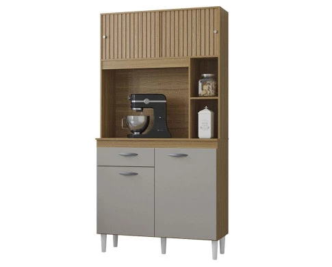 Armário Para Cozinha Kit Duda 90 cm Damasco Ripado Off White- Poquema