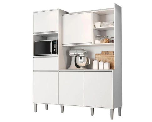 Começou a montar sua cozinha? Então apresentamos para você este belo kit para cozinha da linha Isabel. Com cinco portas, sendo uma porta basculante equipado com pistão a gás. Conta também com uma gaveta com corrediças metálicas, garantindo um deslizamento eficiente e resistente para o uso diário. Composto por cinco nichos possui um para micro-ondas ou forno elétrico, um nicho superior para colocar objetos decorativos ou utensílios menores, dois nichos maiores e um nicho grande para acomodar seus eletros ou seus acessórios. Os puxadores e pés em PVC oferecem mais resistência e boa durabilidade. Fabricado pela AJL, é desenvolvido em 100% MDP, sendo a escolha perfeita para quem busca praticidade, design moderno e acabamento de qualidade. Aproveite e garanta já o seu!