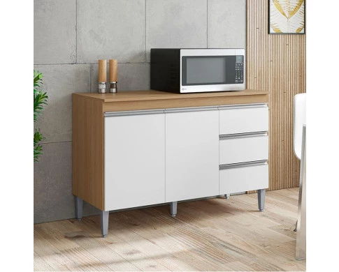 Balcão de Cozinha Ambiente Andréia com Tampo 120cm Amêndoa Branco - AJL