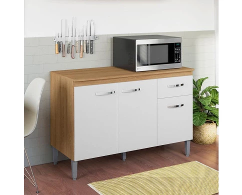 Está montando sua cozinha? Apresentamos para você este belo balcão da linha Gabriela. Conta com três portas e uma gaveta equipada com corrediças metálicas, garantindo um deslizamento suave e seguro. Seu design é complementado por puxadores e pés em PVC, garantindo mais estabilidade e facilitando na hora da limpeza. Acompanhado de um tampo resistente para apoiar seus utensílios e eletrodomésticos. Fabricado pela AJL, é desenvolvido em 100% MDP, dando um visual moderno e acabamento impecável. Com 120cm de largura, é a escolha perfeita para compor sua cozinha com mais praticidade e organização. Aproveite e garanta já o seu!