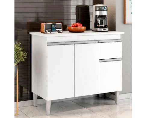 Balcão de Cozinha Ambiente Tatiane com Tampo 100cm Branco Brilho - AJL