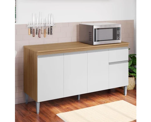 Balcão de Cozinha Tatiane com Tampo 145cm Amêndoa Branco - AJL