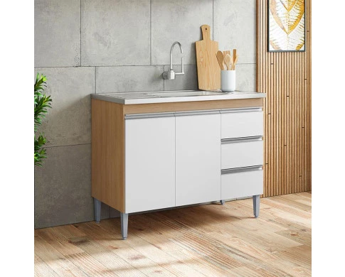 Balcão de Pia Ambiente Andréia 100 cm Amêndoa Branco - AJL