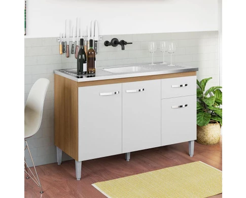 Balcão de Pia Ambiente Gabriela 120cm Amêndoa Branco - AJL
