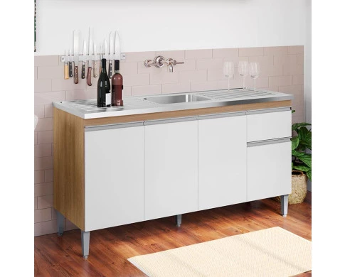 Balcão de Pia Ambiente Tatiane 145cm Amêndoa Branco - AJL