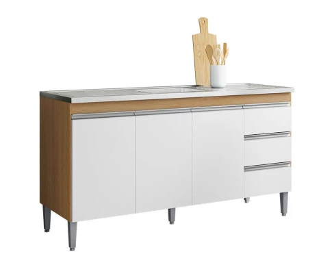Balcão de Pia Andréia 150cm Amêndoa Branco - AJL