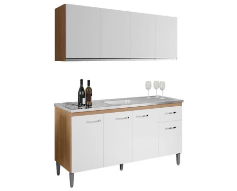 Balcão de Pia Gabriela 150cm e Armário Aéreo Andréia Amêndoa Branco - AJL