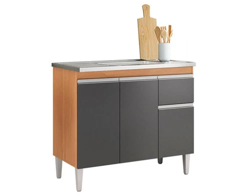 Balcão de Pia Tatiane 100cm Amêndoa Preto - AJL