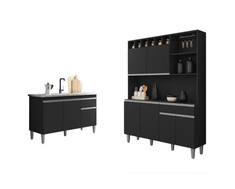 Armário para Cozinha Kit Alice Preto Fosco - AJL