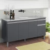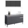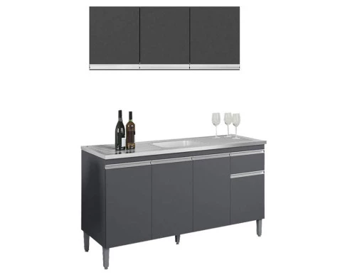 Balcão de Pia Tatiane 145 cm e Armário Aéreo Andréia 3 Portas 120 cm Cinza Fosco – AJL