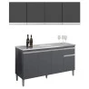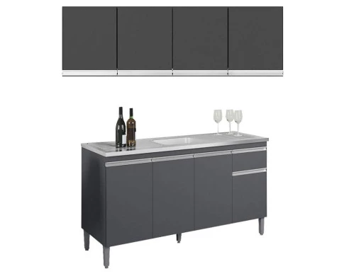 Balcão de Pia Tatiane 145 cm e Armário Aéreo Andréia 4 Portas 160 cm Cinza Fosco – AJL