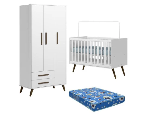 Berço Americano 3820 e Guarda Roupa 3830 Q Encanto Retrô Branco Acetinado com Colchão Tend Tudo - Qmovi