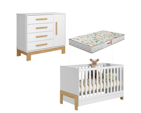 Começou a montar o quartinho do bebê? Apresentamos este lindo conjunto da linha Fantasia e Q Encanto Slim, desenvolvidos pela Qmovi a combinação ideal para que o quarto do bebê fique bonito e funcional. Fabricados com materiais de excelente qualidade e procedência em MDP/MDF garantindo durabilidade e resistência. O berço acompanha o crescimento do bebê tendo a opção de montar como mini cama. A cômoda possui uma porta e quatro gavetas oferecendo espaço para acomodar roupinhas e acessórios do bebê Confira e aproveite!