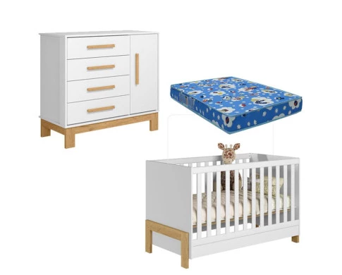 Berço Americano 4300 Fantasia e Cômoda 4355 Q Encanto Slm Branco Acetinado com Colchão Ortobom – Qmovi
