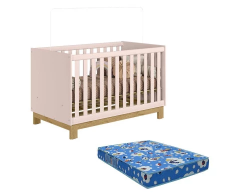 Berço Americano 4315 Q Encanto Slim Rosa Acetinado com Colchão Tend Tudo – Qmovi