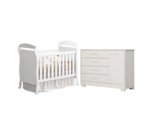 Berço Americano Danny e Cômoda Infantil Zaki Branco Acetinado - Reller