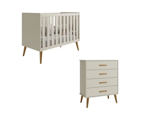 Berço Americano e Cômoda Gaveteiro Infantil Isis Areia Acetinado - Reller
