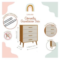 Cômoda Gaveteiro Infantil Isis Areia Acetinado Savana - Reller