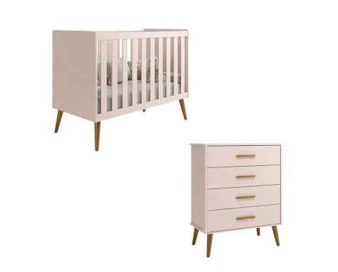 Berço Americano e Cômoda Gaveteiro Infantil Isis Rosa Acetinado - Reller