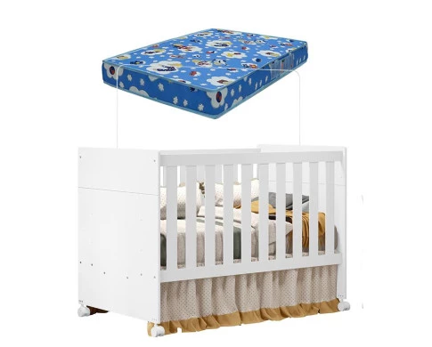 Berço Americano Katatau Branco Acetinado com Colchão Ortobom– Reller