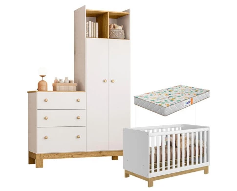 Começou a montar o quartinho do seu bebê? Aqui você encontra a opção ideal para que o quartinho fique aconchegante e moderno. O berço acompanha suporte de mosqueteiro e se transforma em mini cama aumentando a vida útil do produto. O guarda roupa cômoda da linha Q Encanto Slim possui 2 portas, 3 gavetas, 4 prateleiras bem distribuídas para melhor acomodar as roupinhas, sapatinhos e acessórios do seu bebê. Um móvel moderno e de excelente qualidade, com um design moderno. Venha aproveitar e garantir já o seu!