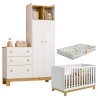 Berço Americano Mini Cama 4315 e Guarda Roupa com Cômoda 4970 Q Encanto Slim Branco Acetinado com Colchão Gazin – Qmovi