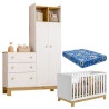 Berço Americano Mini Cama 4315 e Guarda Roupa com Cômoda 4970 Q Encanto Slim Branco Acetinado com Colchão Ortobom – Qmovi