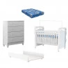 Berço Americano New Nanda Cômoda Ariel e Trocador Juju Branco Brilho com Colchão Ortobom – Carolina