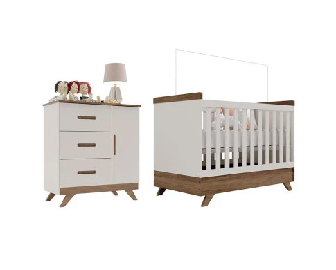 Transforme o quartinho do bebê em um espaço cheio de charme e funcionalidade com o conjunto Berço Americano Retrô Vitória e Cômoda Infantil Retrô Maya. Com design inspirado no estilo retrô, os móveis combinam linhas delicadas, pés palito e a harmonia entre o tom off white e o aconchego da madeira carvalho, criando um ambiente elegante e atemporal.O berço oferece segurança e conforto para o bebê, enquanto a cômoda garante organização prática com amplo espaço para roupas, acessórios e itens essenciais do dia a dia. Mais do que móveis, são peças que unem beleza, qualidade e durabilidade para acompanhar a família em momentos especiais.