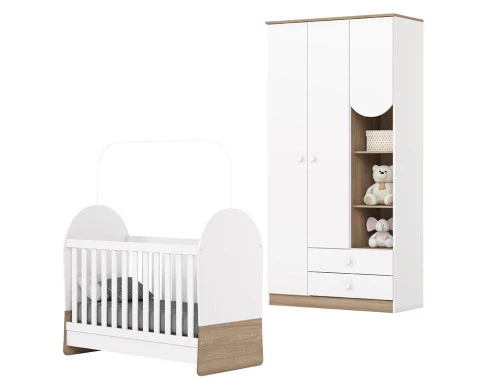 Berço Mini Cama e Guarda Roupa Magia Branco Jequitibá HP - Henn