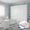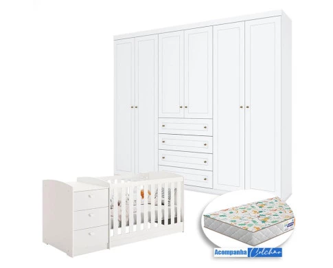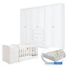 Berço Multifuncional Atlanta e Guarda Roupa 6 Portas Americano Branco Fosco Henn com Colchão Gazin - Reller
