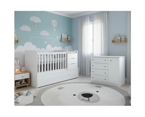 Berço Multifuncional Cleo e Cômoda Infantil Mississipi Ambiente Branco Fosco com Colchão Gazin - Henn
