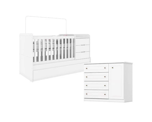 Berço Multifuncional Cleo e Cômoda Infantil Mississipi Branco Fosco - Carolina