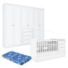 Berço Multifuncional Cleo e Guarda Roupa Infantil 6 Portas Mississipi Branco Fosco com Colchão Ortobom - Henn