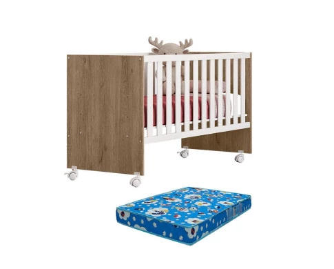 Berço Nacional Doce Sonho 3540 Carvalho Rústico TOQ Branco com Colchão Tend Tudo – Qmovi