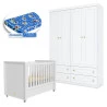 Berço Tutto New e Guarda Roupa Infantil Americano 4 Portas Branco Fosco com Colchão Ortobom - Matic