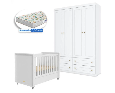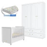 Berço Tutto New e Guarda Roupa Infantil Mississipi 4 Portas Branco Fosco com Colchão Gazin - Matic
