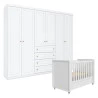 Berço Tutto New e Guarda Roupa Mississipi Ambiente 6 Portas Branco Fosco - Matic