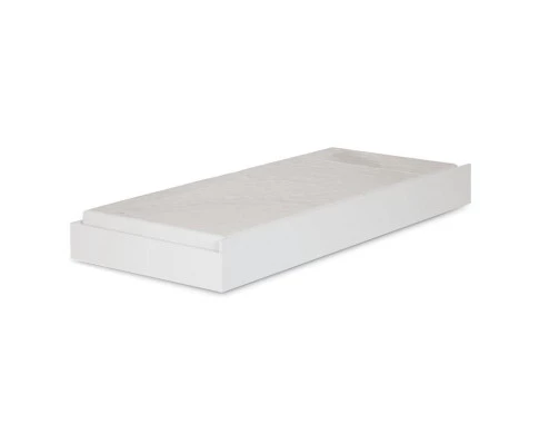 Cama Auxiliar Branco: Uma solução prática para quando você precisa acomodar mais gente sem perder espaço. A Cama Auxiliar desliza suavemente sobre rodízios e fica escondida embaixo de outra cama (caso juntar com uma bicama), perfeita para visitas ou quartos compartilhados. Indicada para colchão solteiro padrão, acabamento em tom madeirado com verniz fosco e produção sustentável.