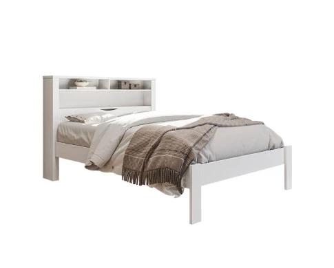 Cama Casal Invicta Branco: Se você quer uma cama de casal que una conforto e organização, a Invicta é uma ótima escolha. Ela traz baú na cabeceira para guardar roupas de cama, prateleiras para deixar o celular e livros por perto e pés reforçados que passam segurança. O acabamento em tom madeirado deixa o quarto elegante e aconchegante.
