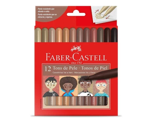 Canetinha Hidrográfica Ponta Vai e Vem 150112VVCCZF 12 Cores Tons de Pele - Faber Castell